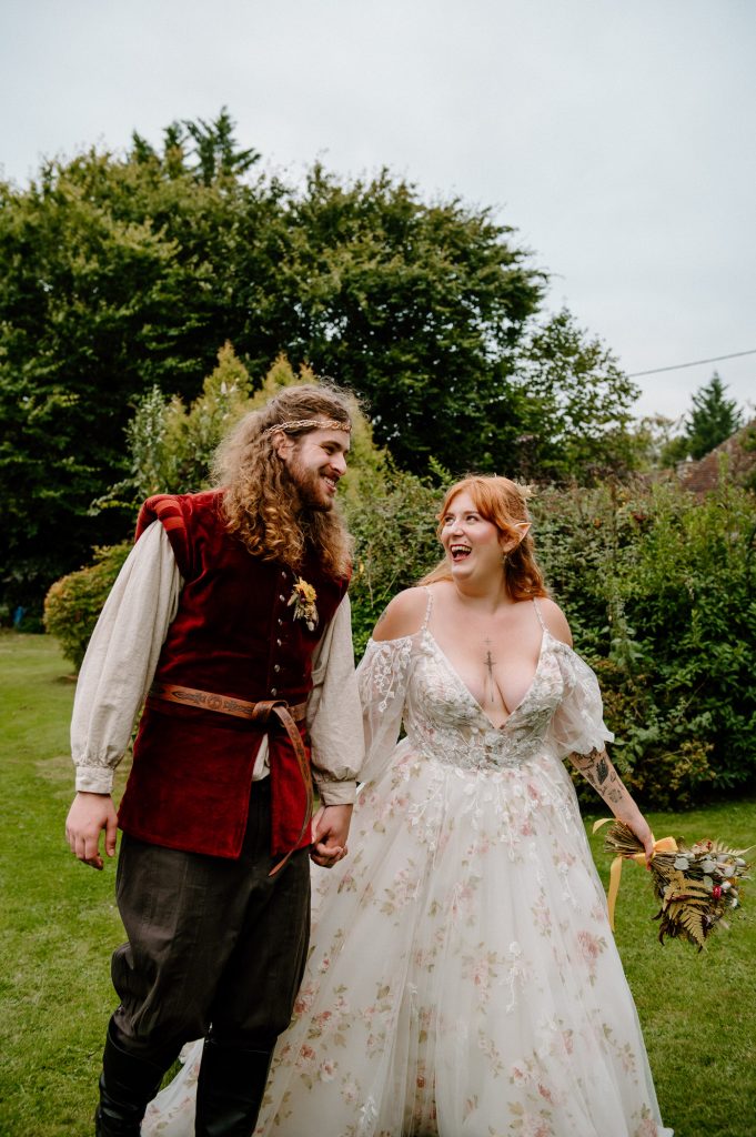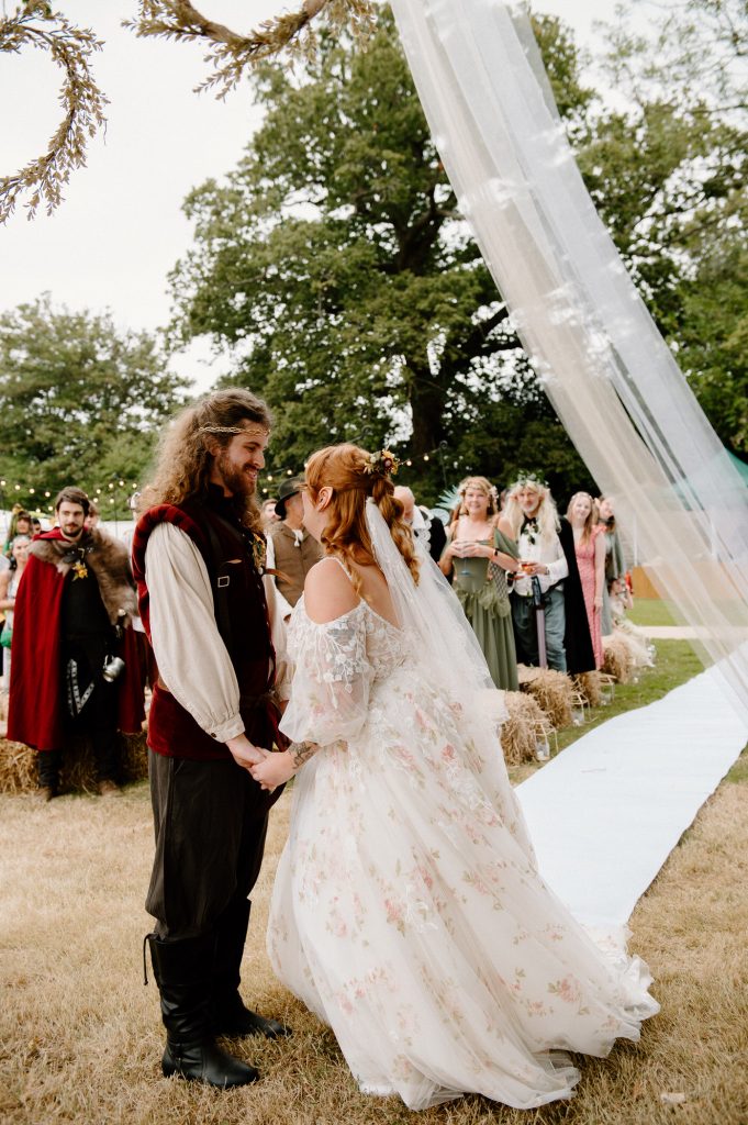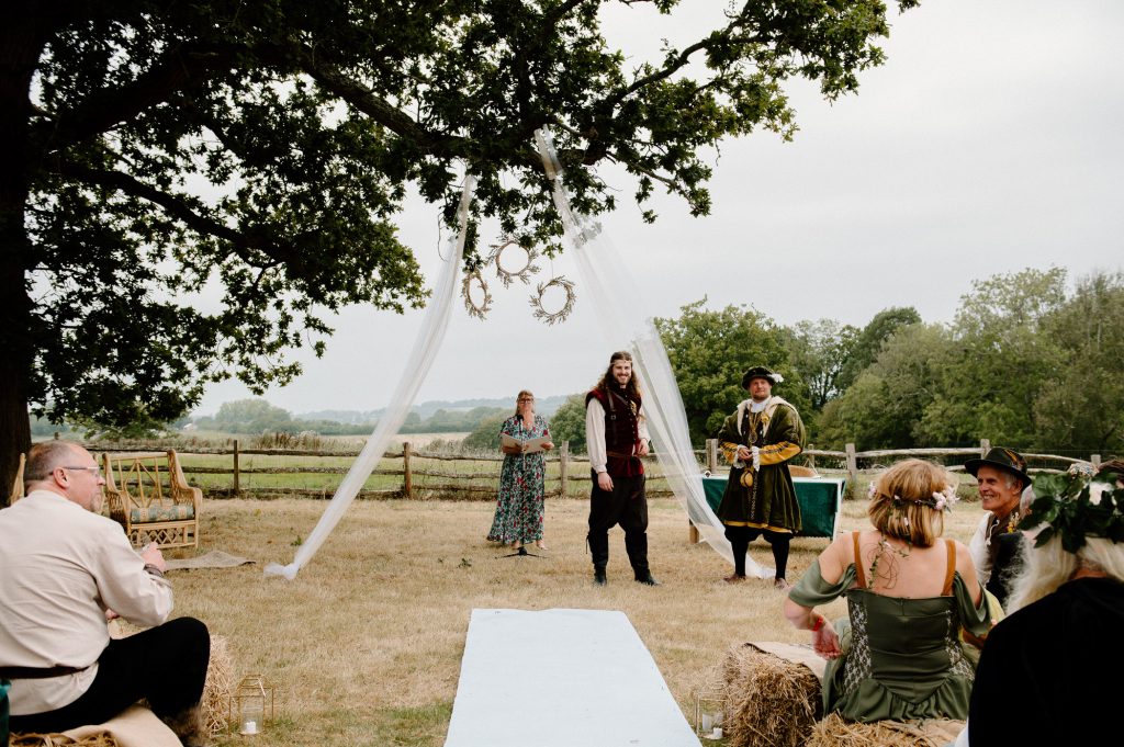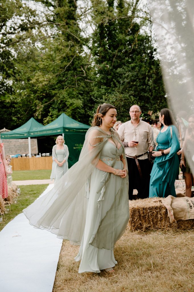 Daisy and Tom’s outdoor marquee wedding was held at Toms’s family home. This is where the whole wedding would take place, the outdoor wedding ceremony and also the reception. They had a beautiful outdoor wedding with a hand-fasting ceremony with Daisy’s mum walking her down the aisle. They had an outdoor drinks reception which was followed by speeches. These were also held outdoors (which if you have been present on one of my galleries before you will know I love an outdoor speech at wedding). It was so wonderful to look around at this Lord of the Rings themed wedding and see so many fantastical and phenomenal outfits and costumes. It felt like we were in our own little Middle Earth. This wedding was such a riot and I hope to photograph many more themed weddings from here on in. Hobbits sure do know how to party.